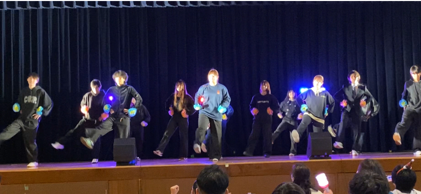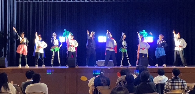 1年生は3グループが幼児向けのダンスを踊り、4曲目には全員で『ジングルベル』を楽しく、笑顔で踊り、とても盛り上がりました。