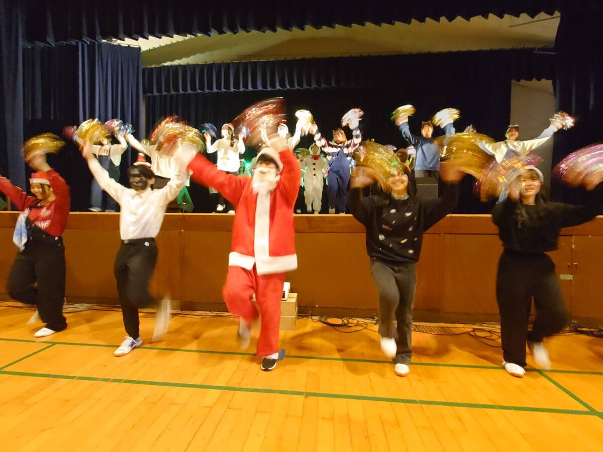 1年生は3グループが幼児向けのダンスを踊り、4曲目には全員で『ジングルベル』を楽しく、笑顔で踊り、とても盛り上がりました。