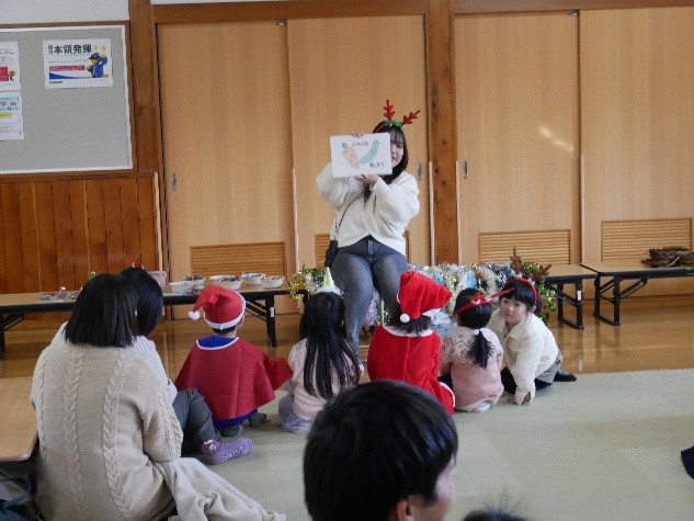 2025年12月14日(日)に読み聞かせサークルもちもちの木主催のクリスマス会が、北条児童センターで開催されました。今年で5回目になるイベントを楽しみにしてくださる方も多く、15組の親子(大人26名、子ども25名)総勢51人の申し込みがあり、にぎやかに行われました。