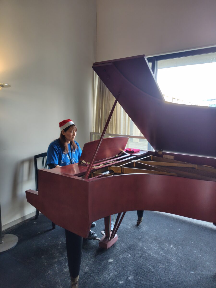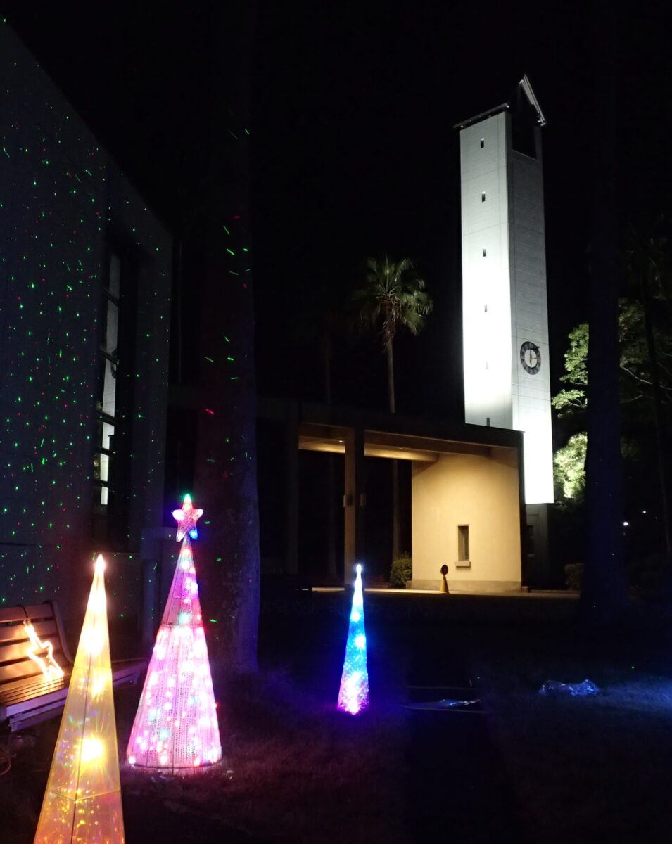 今回のオープンキャンパスは普段と異なり、⼣⽅から始まります。学内各所に設置されたイルミネーションを楽しみながら、夜のキャンパスの雰囲気を感じて頂こうという試みです。⾳楽科教員によるピアノ演奏も⾏い、クリスマスムードが⾼まります。