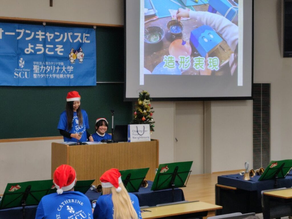 短い時間でしたが、カタリナのクリスマスの様⼦と保育学科の楽しい雰囲気を感じて頂けたなら幸いです。次回のオープンキャンパスは2026年3⽉20⽇(⾦:春分の⽇)です。⼯夫を凝らした内容を準備しておりますので、ぜひお越し下さい。