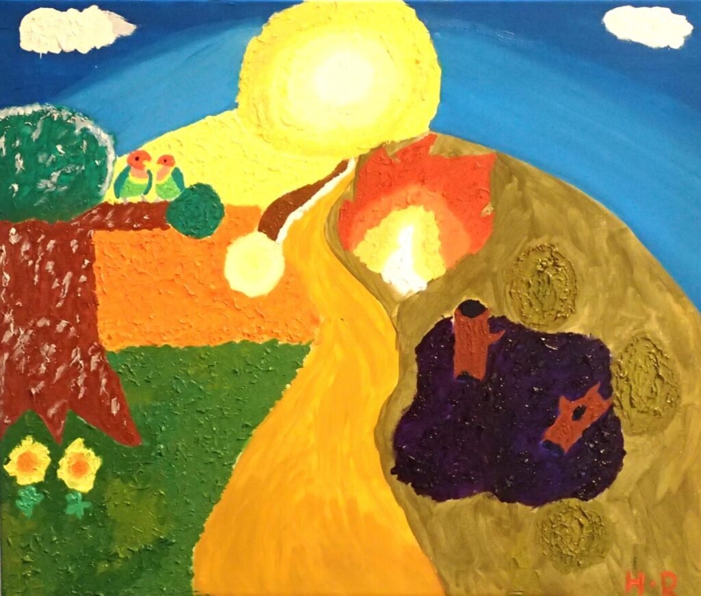 描いたり作ったりすることは、子どもの発達と深く関わる行為です。造形を理解することは、子どもの造形表現を理解することへと繋がっていきます。卒業を前にした2年生の作品は、粗削りながら瑞々しさに満ちています。