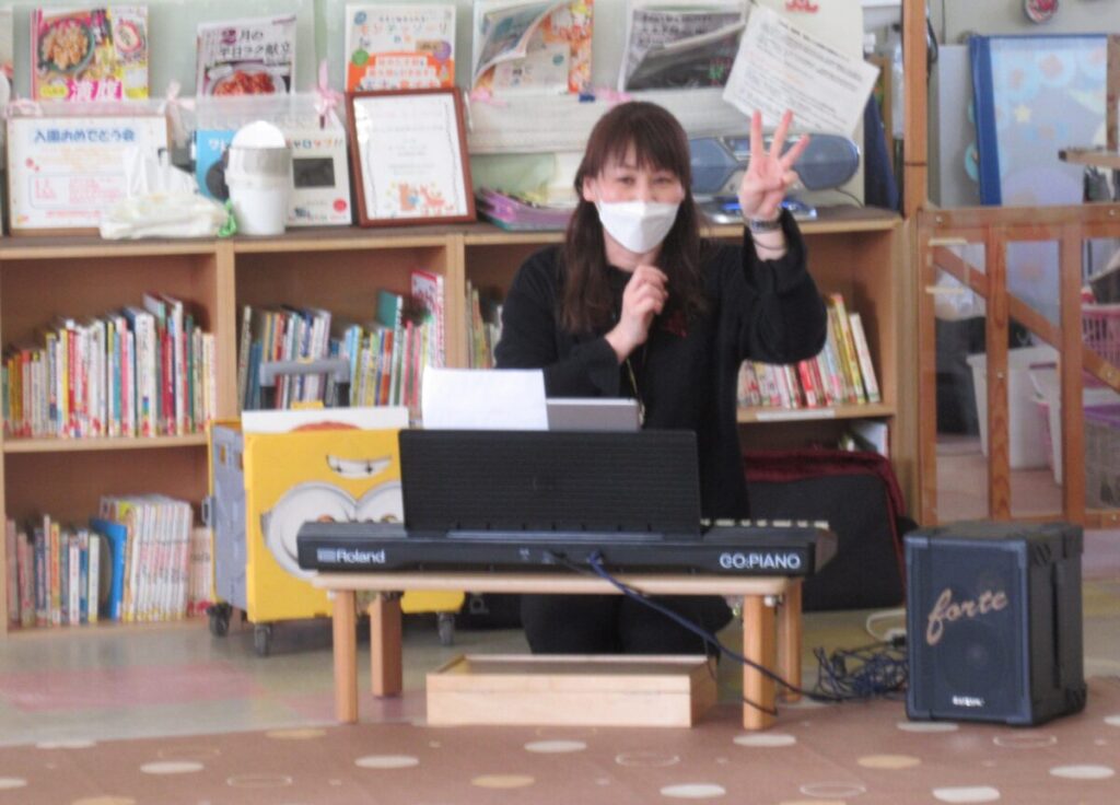 学内にあるカタリナ子育て支援広場『ぽけっと』で、「音楽あそび」の講師を担当しました。